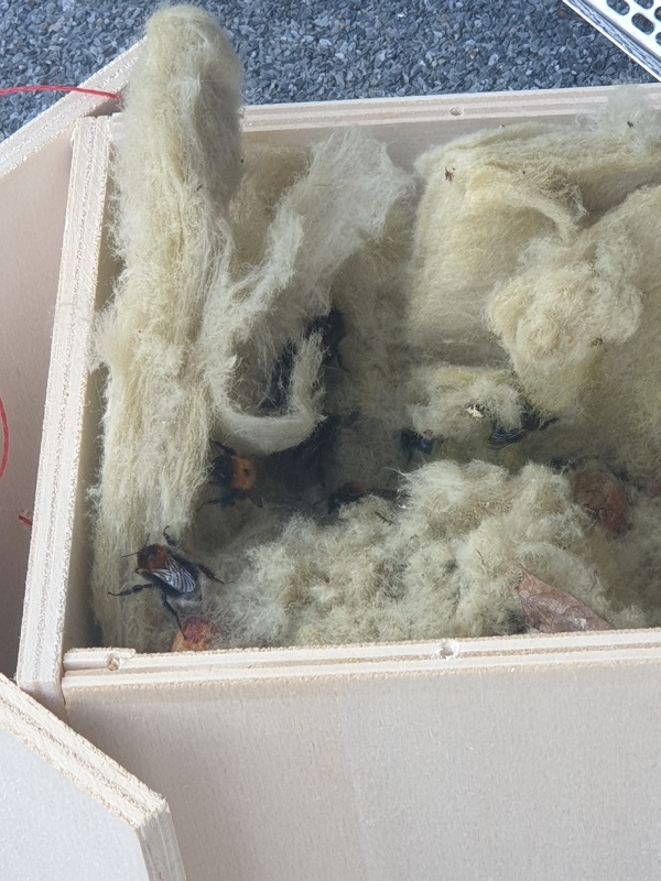 Immer wieder merken wir bei den Bauarbeiten an unserer Schule, dass sich die Natur unser Gebäude zurückerobern möchte. Selbstständige Renaturierung quasi. Da gibt es Efeu, der in Mauerritzen hineinwuchert und in Klassenzimmern wieder auftaucht, Grillen und Feldmäuse, die es sich unter Waschbeckenschränken und in Sofas des Oberstufenzimmers gemütlich machen, Rotschwänzchen, die sich im Gebälk der Lehrertoilette ein Nest bauen - und Hummeln, die sich die gemütlich aussehende Isolierwolle an den neuen Fenstern als perfektes Hummelnest ausgeguckt haben. So ein Hummelnest entdeckten unsere fleißigen Handwerker - und holten Herr Oelze und einige Schüler*innen zur Hilfe, die gemeinschaftlich die Hummeln behutsam in ein flugs zusammengeschraubtes Häuschen umquartierten.