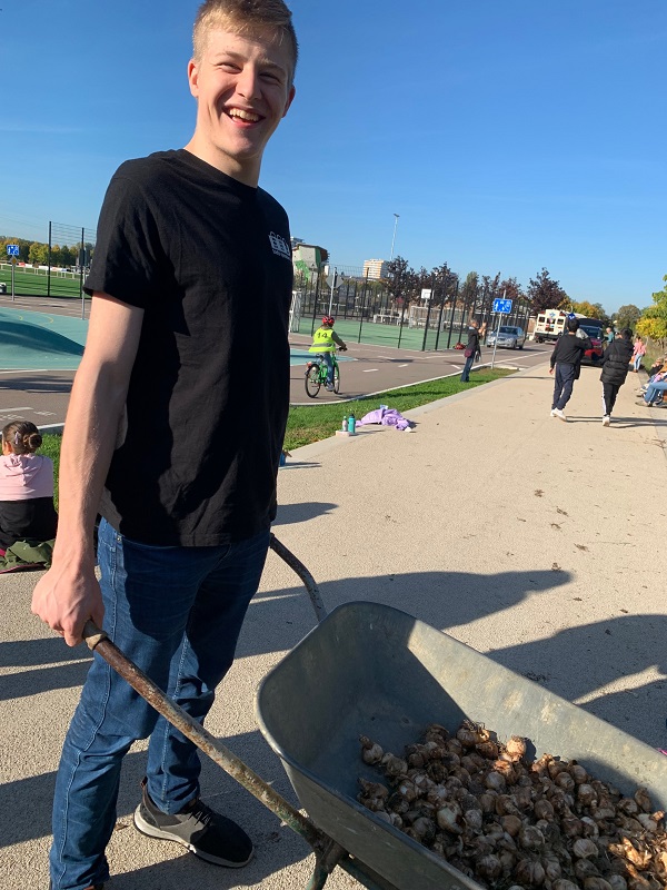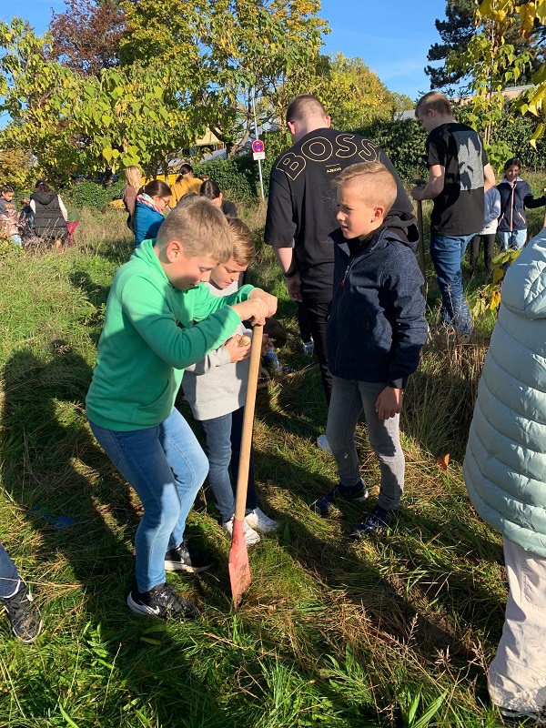 An dieser Pflanzaktion beteiligen sich immer im Herbst viele Lahrer Schulen - wir waren nun schon zum zweiten Mal dabei und haben ordentlich viele vergraben. Beteiligt waren Frau Walz und Frau Billharz mit der 5a, Frau Firgau und Frau mit Grimm mit der 5d, Ben als Schulsprecher und Leon als Vertreter der Eco-School.